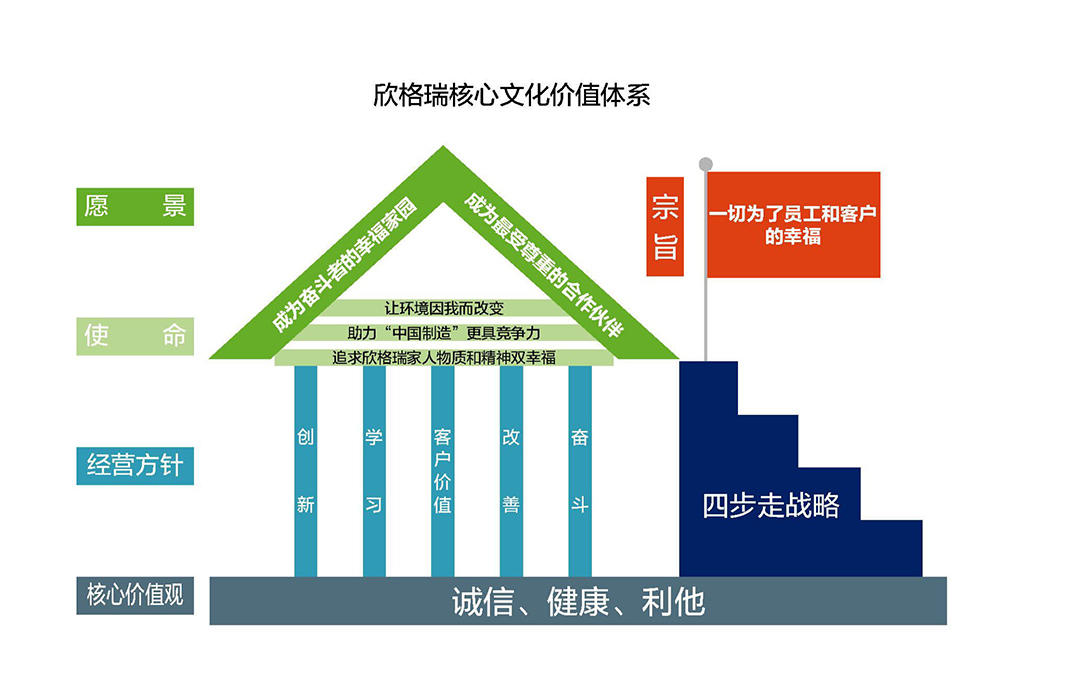 核心價值觀:健康,進取,共贏 核心行為規范:正向積極,言行一致;改善福利,提升素養;專業敬業,服務客戶