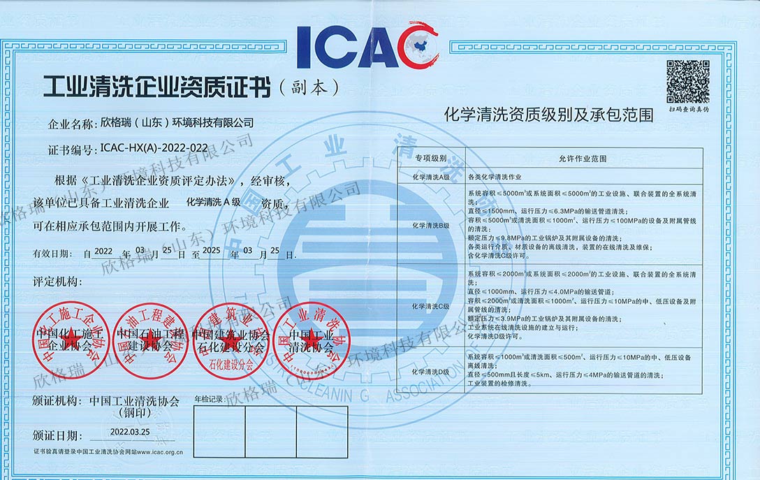 工業設備高壓水清洗、PIG清洗、儲罐清洗A級資質
