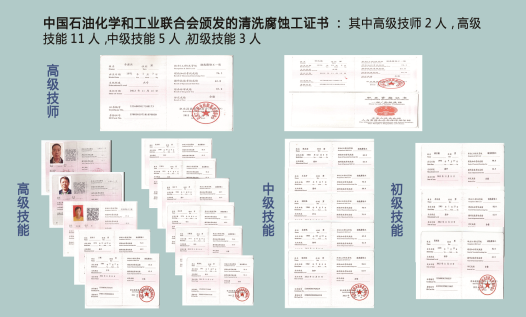 中國石油化學和工業聯合會頒發的清洗腐蝕工證書